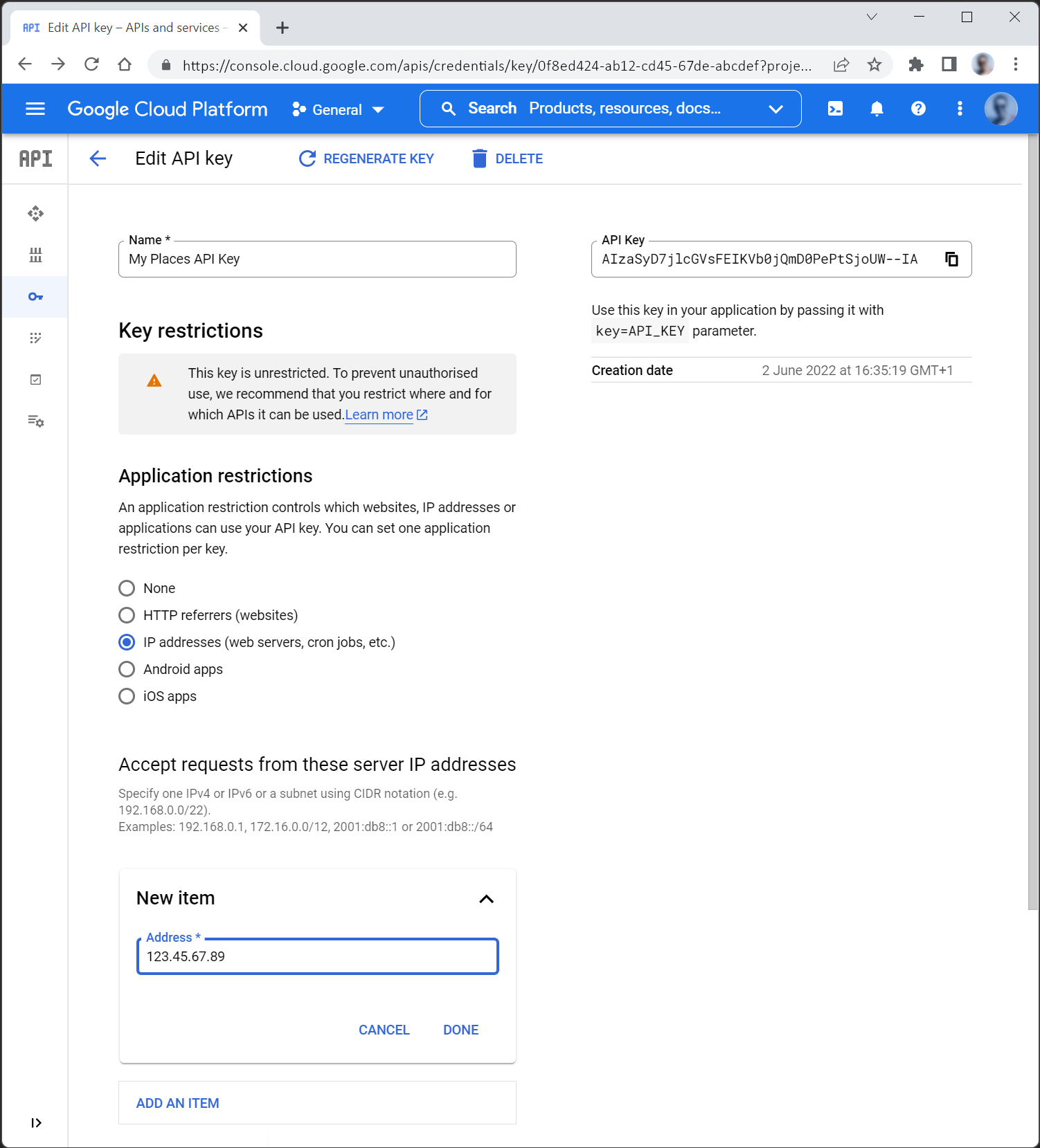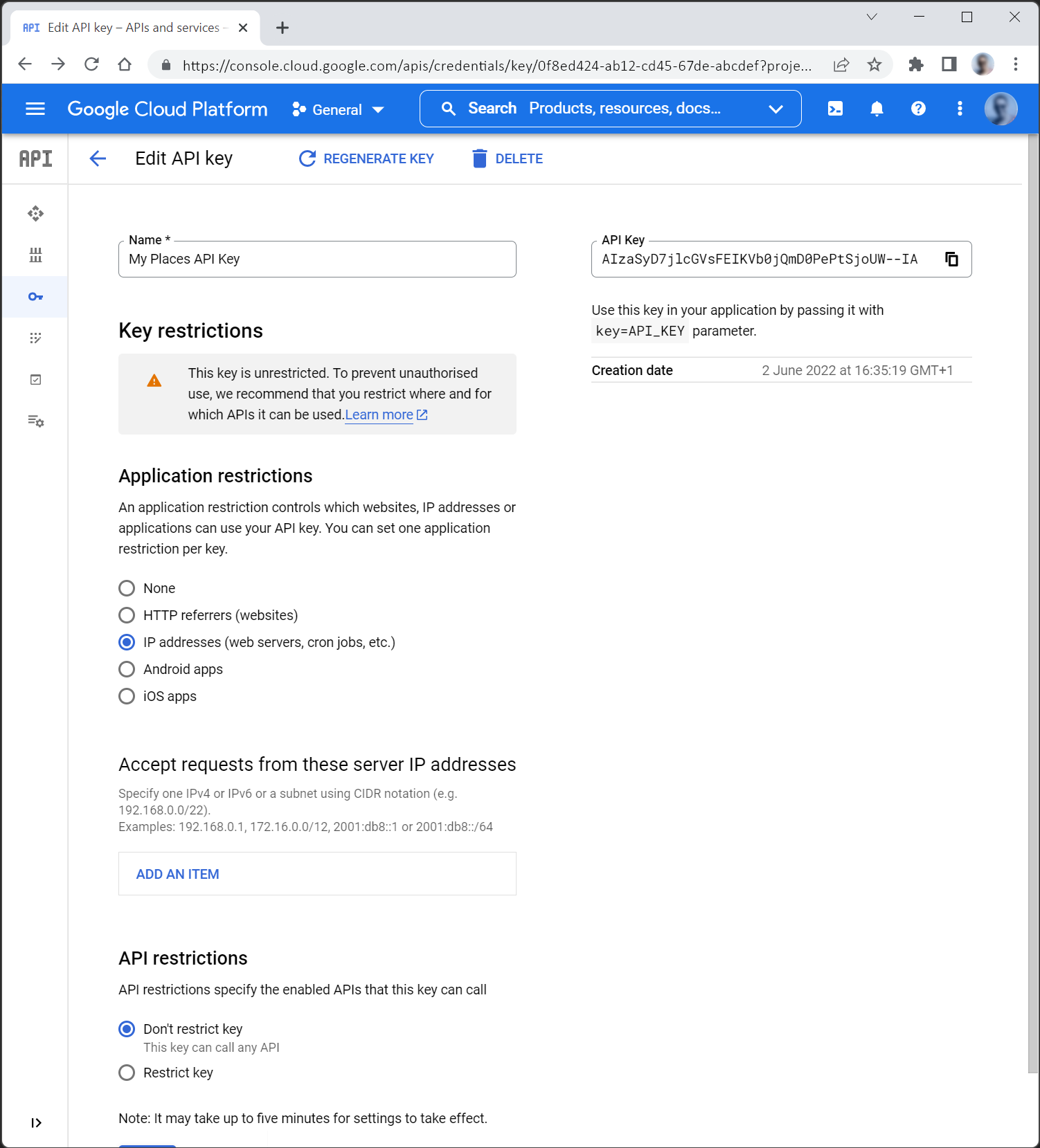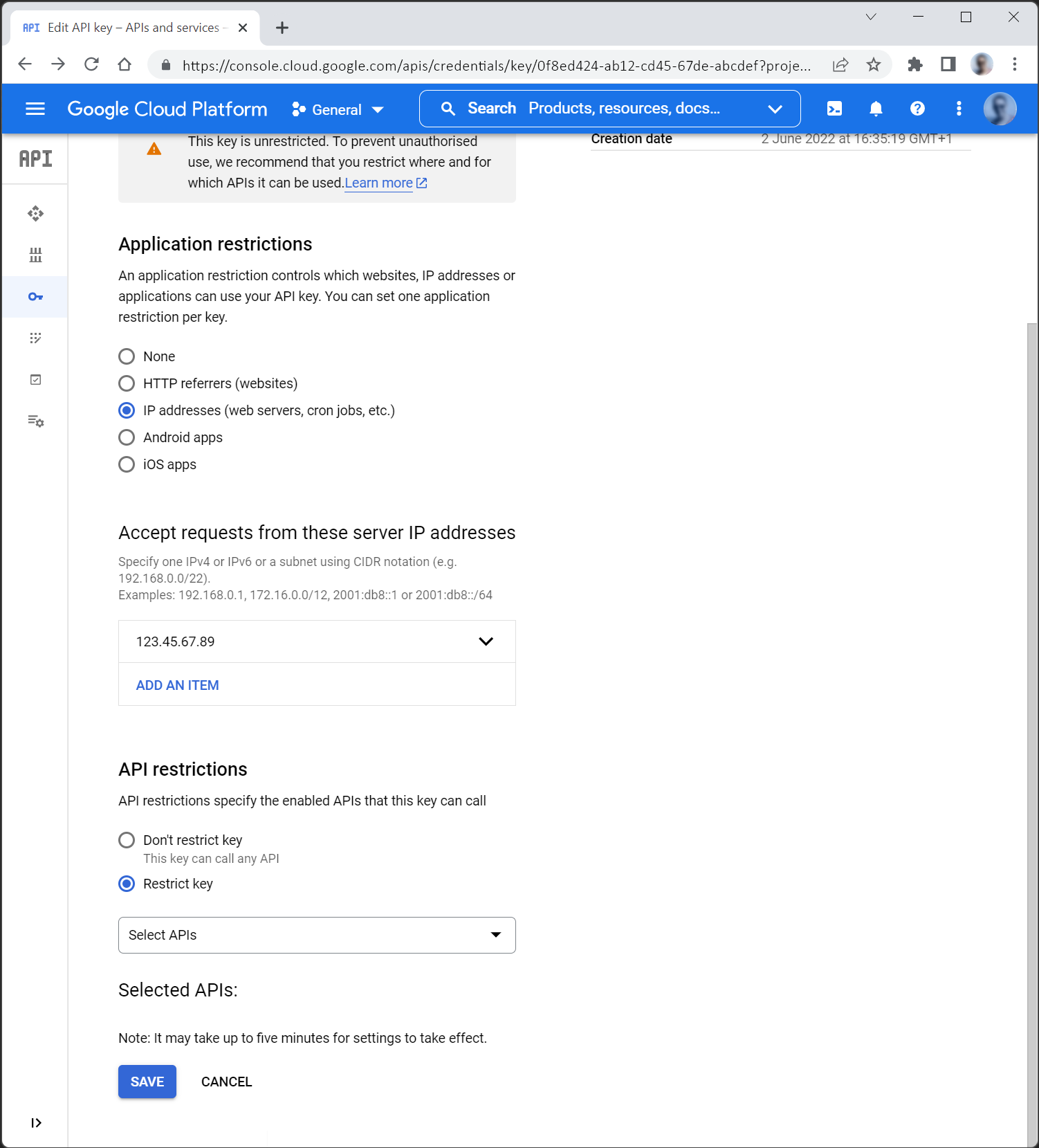 1. 5. Restrict to IP Under “Application restrictions”, set this to: “IP addresses”