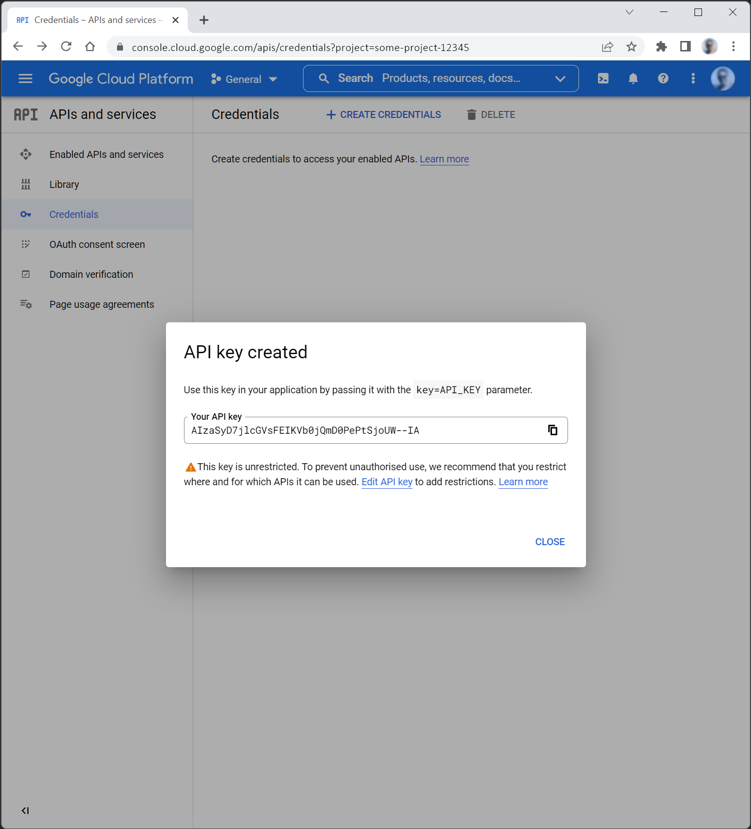 3. 3. Create API key Once this key is created, click “Close”