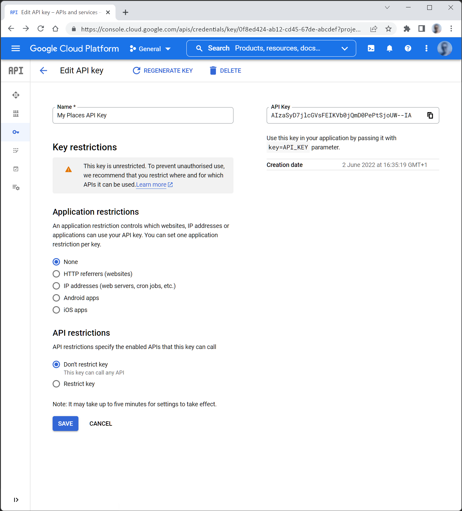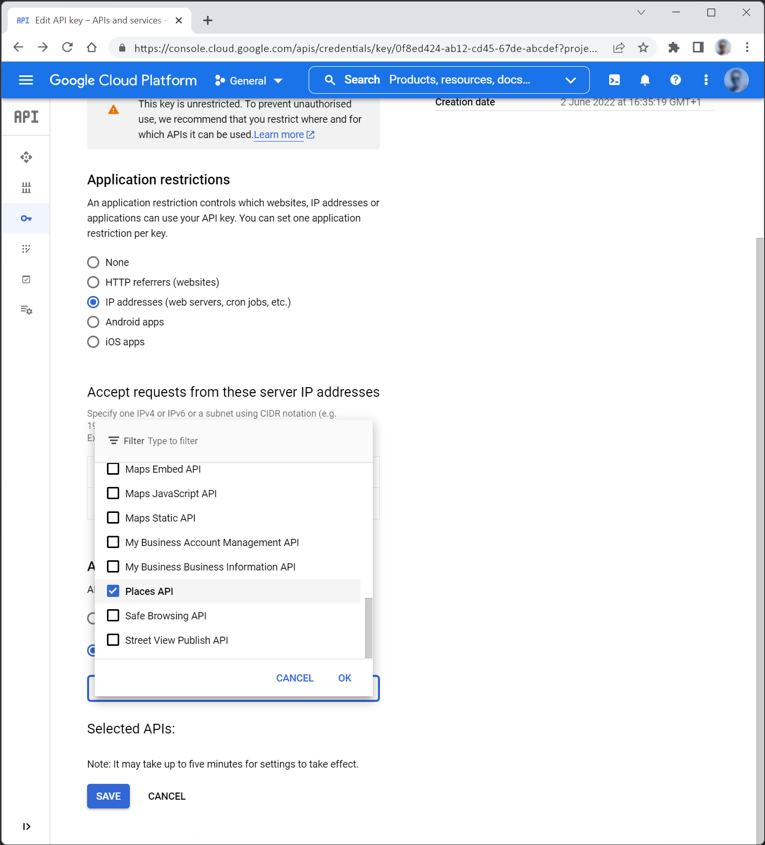 4. 6. Restrict by API Click “Save” to set the restrictions