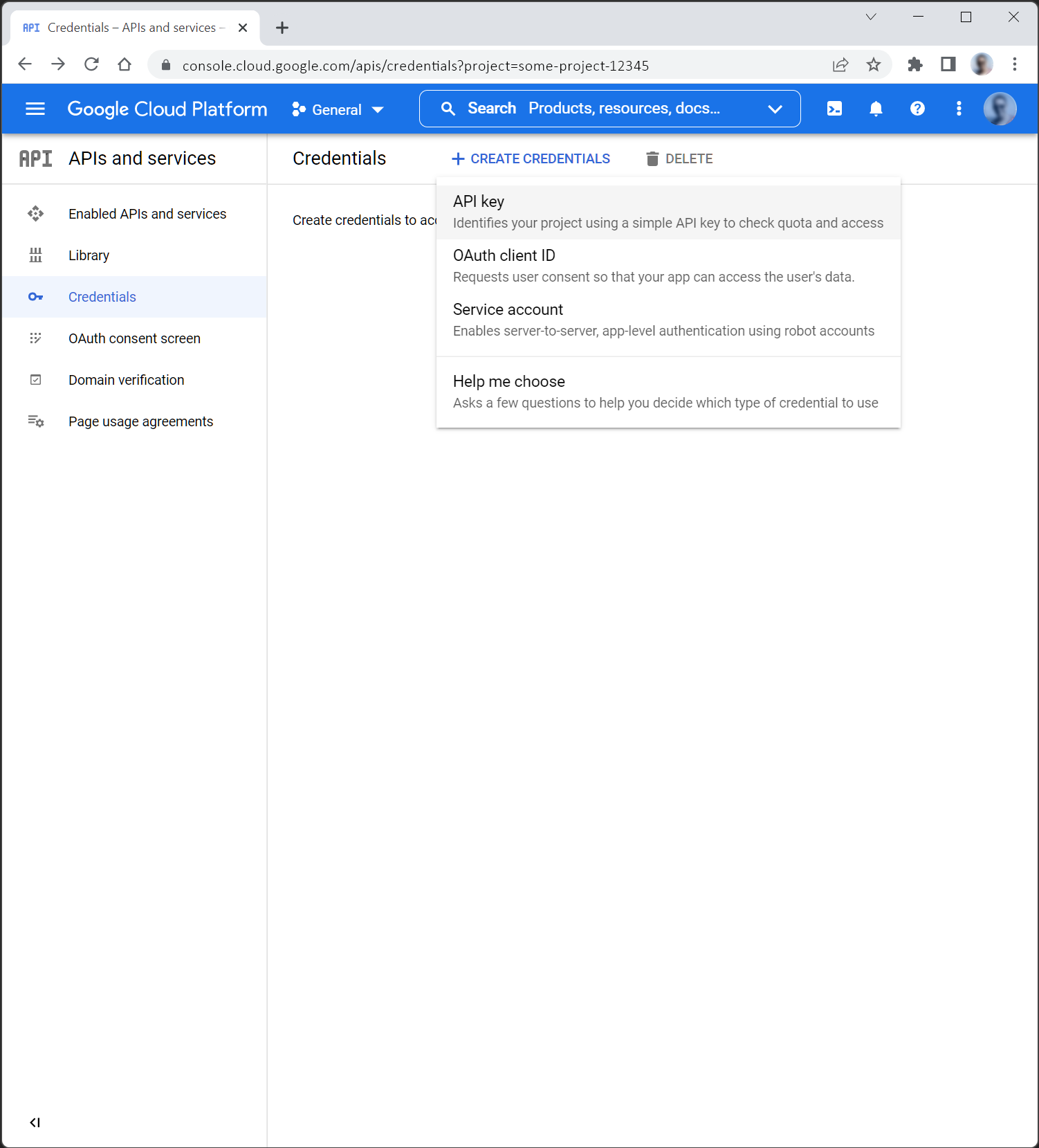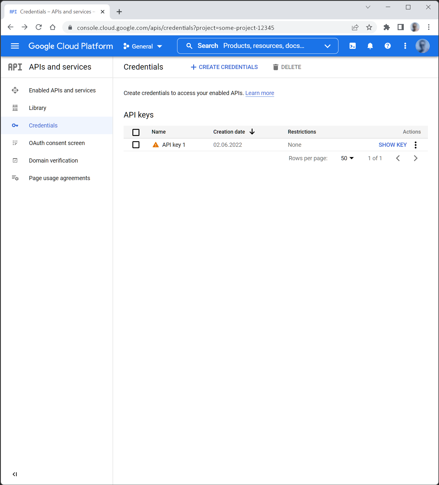 1. 3. Create API key In Credentials, click the button: “+ Create Credentials”